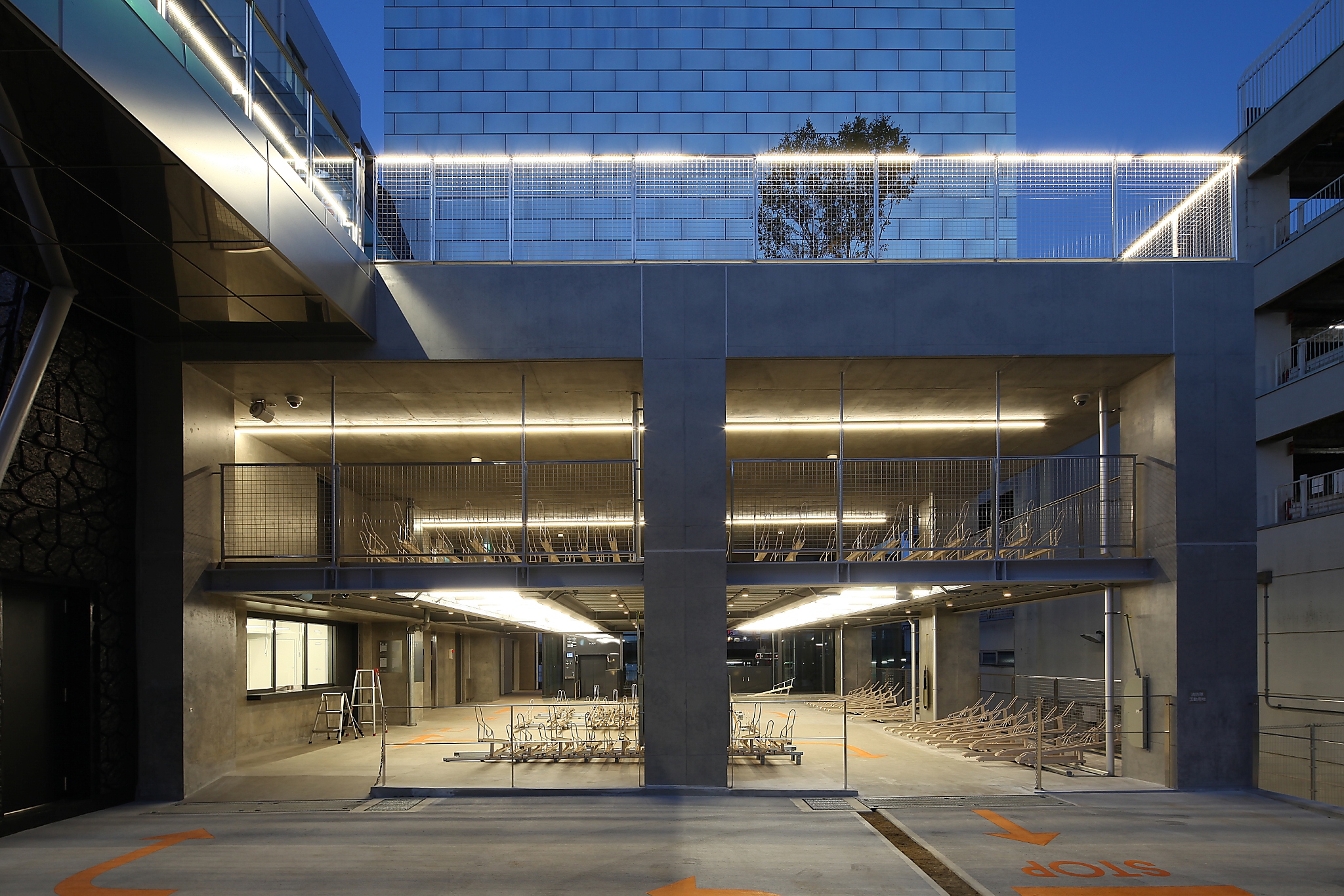B1F~2Fまでは駐輪スペース、その上のフロアは屋上庭園となっている。また機械式の駐輪場となっており、B1F~2Fのスペース以外は自転車専用のエレベータを使用し、上部の強大なBOX部分に自転車を収納する。B1F~2Fの一般的な駐輪スペースは蛍光灯やLEDライン照明等、線の光を用いてファクトリーっぽさを意識した照明計画となっている。