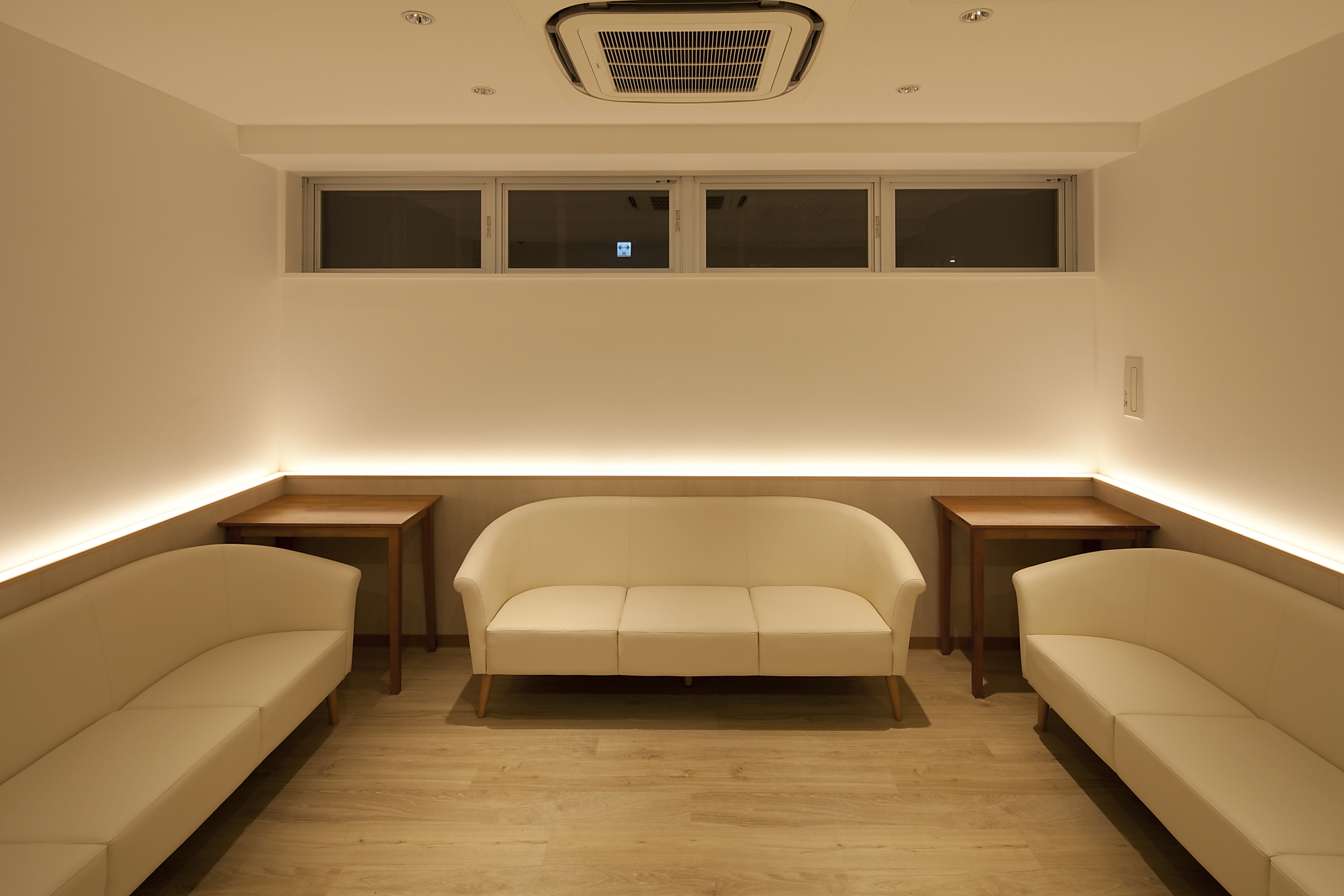 神奈川県横浜市鶴見区にある人工透析クリニック。通院する患者さんをやさしく迎え入れ、リラックスできる雰囲気を作り出すために医療施設でありながら温かみのある電球色を中心とした照明計画を行った。