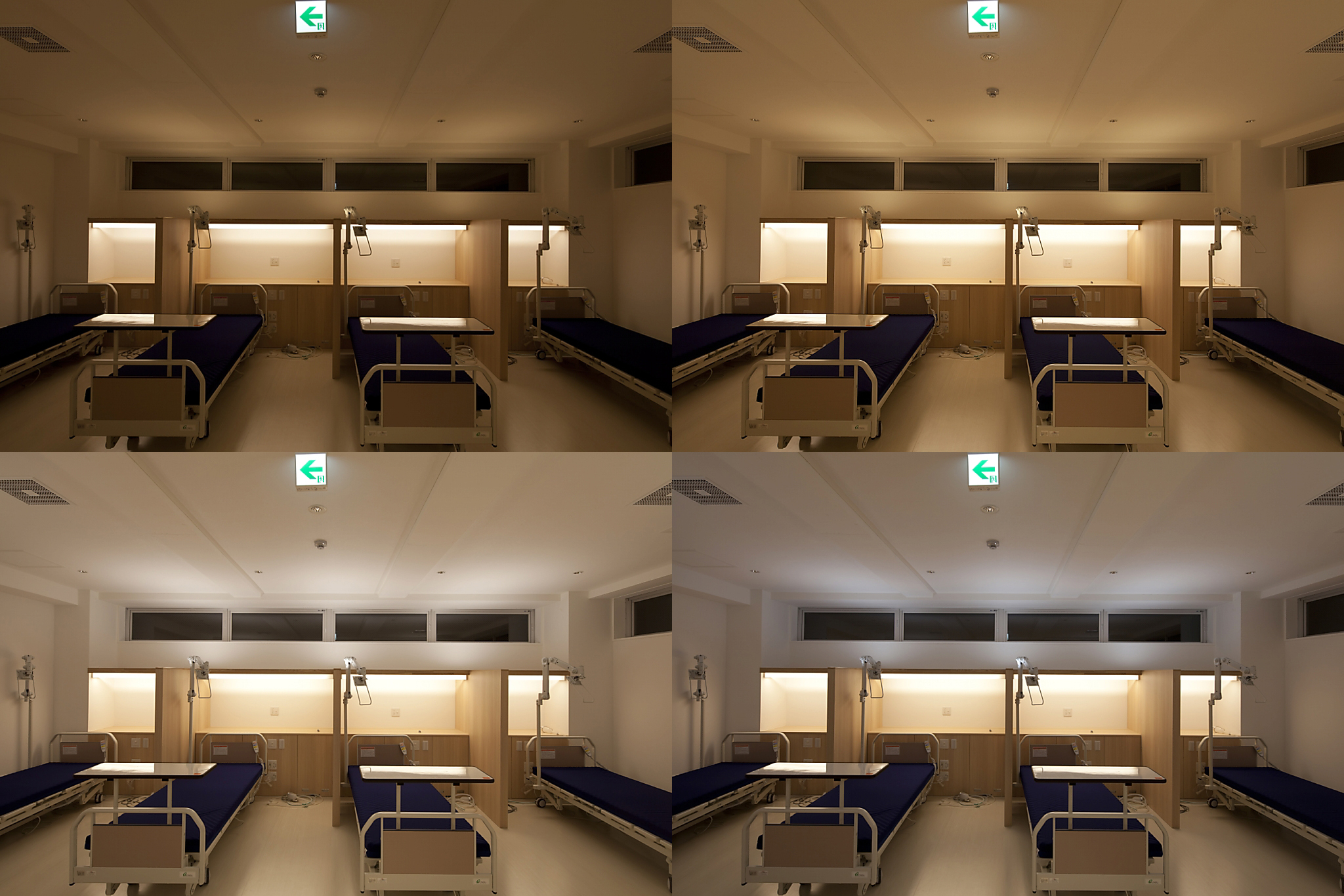 サーカディアンライティングは太陽光の色温度の変化を模しており、太陽の動きに合わせて生活する人間や生物と相性の良い照明手法として医療施設はもちろん、様々な空間で注目されている。