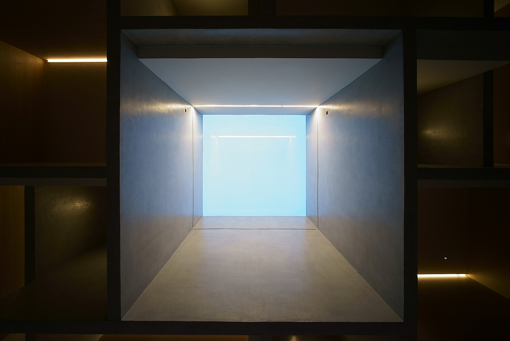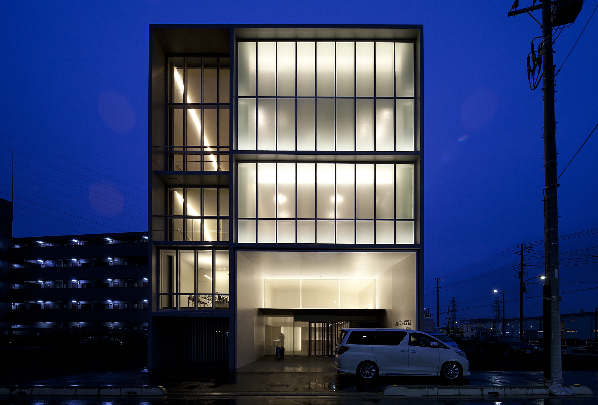 天井のボックスに取り付けられているLEDライン照明は個別に調光制御され、様々な光のシーンを作り出している。また式場奥は大きなガラス窓となっており、そのガラス窓を間接照明で柔らかく照らすことでその光が式場の象徴的な光となっていると同時に、外から見ると建物ファサード照明の役割も果たしており、都市の行灯のように柔らかで優しい光を灯している。