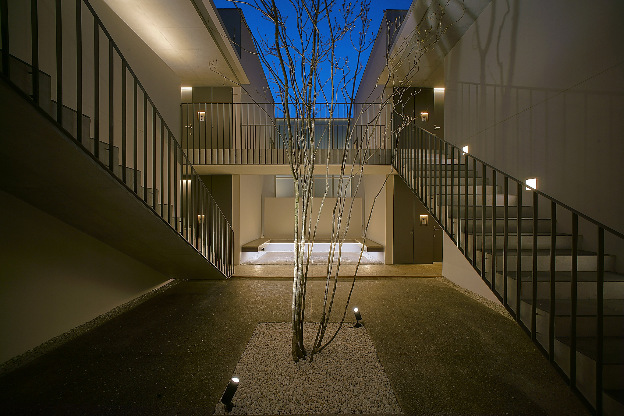 神奈川県横浜市にある集合住宅の照明計画。天井や壁面を照らす間接照明を効果的に用い、極力照明の存在感を感じさせないようにコンパクト、スリムという事を特に意識し、光が作り出す空気感が建築の更なる付加価値となるように心がけた。