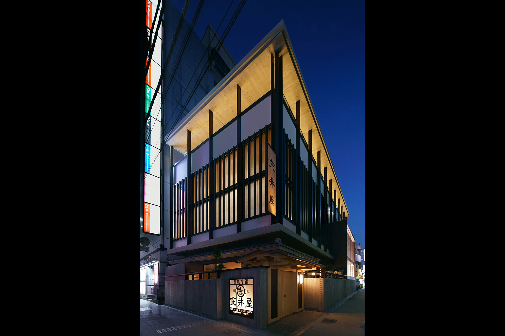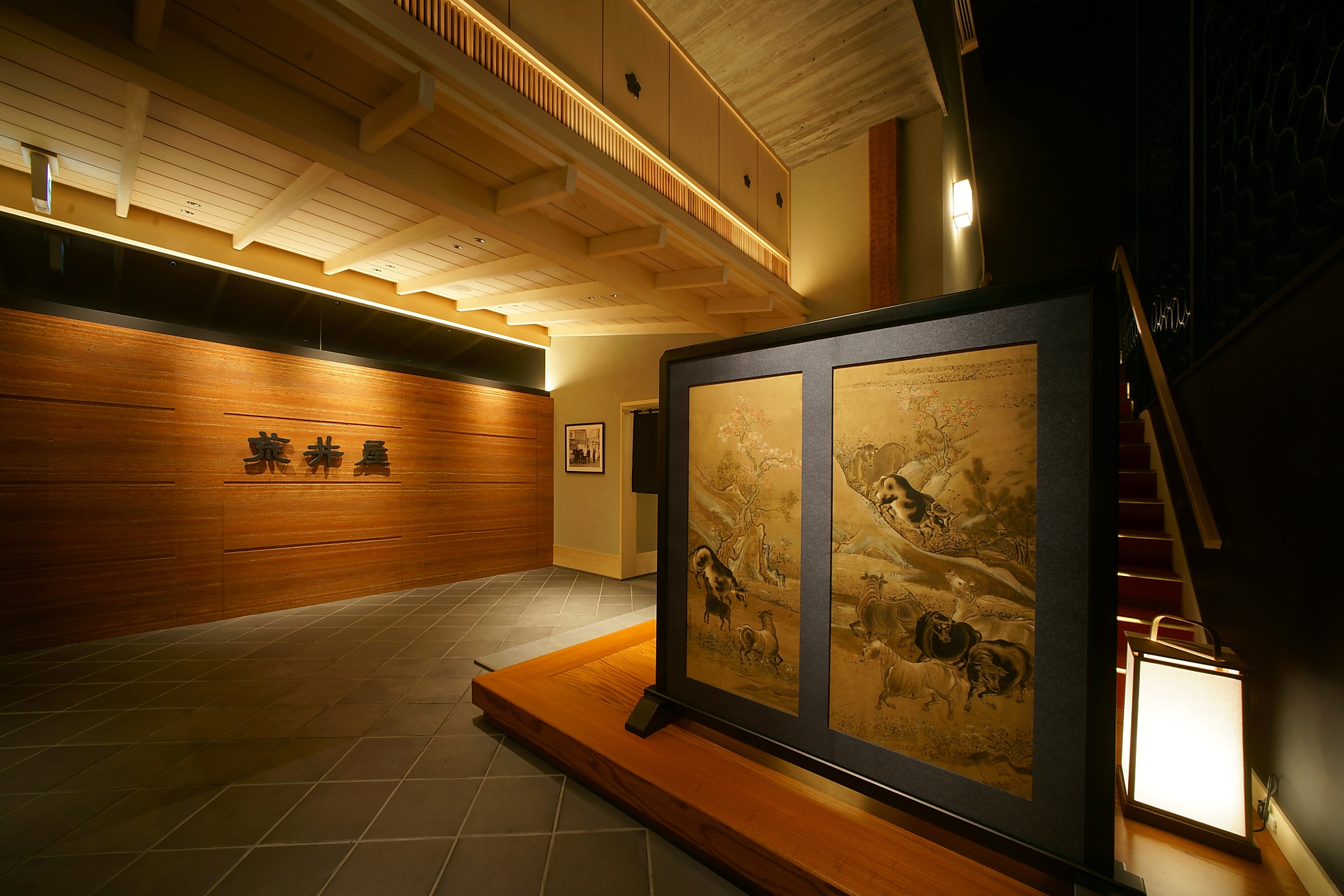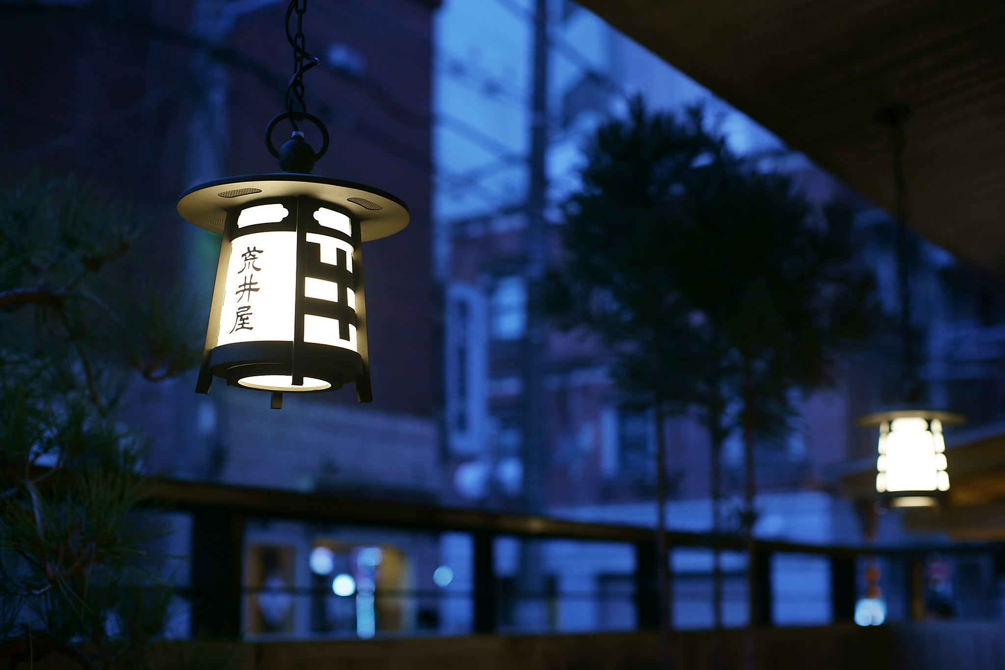 また、各所に配置された荒井屋のロゴや家紋などをあしらった特注の行灯やブラケット、ペンダントも見所の一つである。