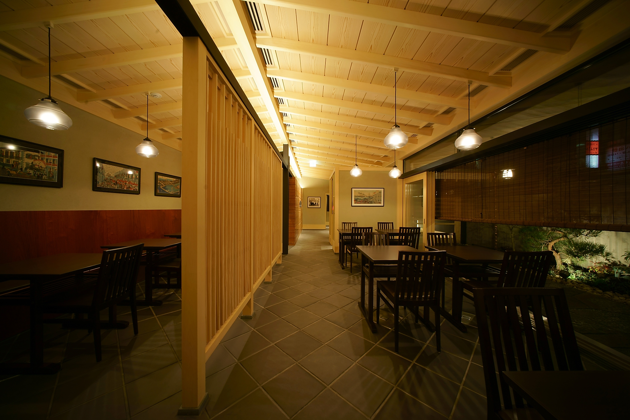 創業の原点に立ち返り、庭と一体となる軒下で開放的に食事ができる「癒しの空間」