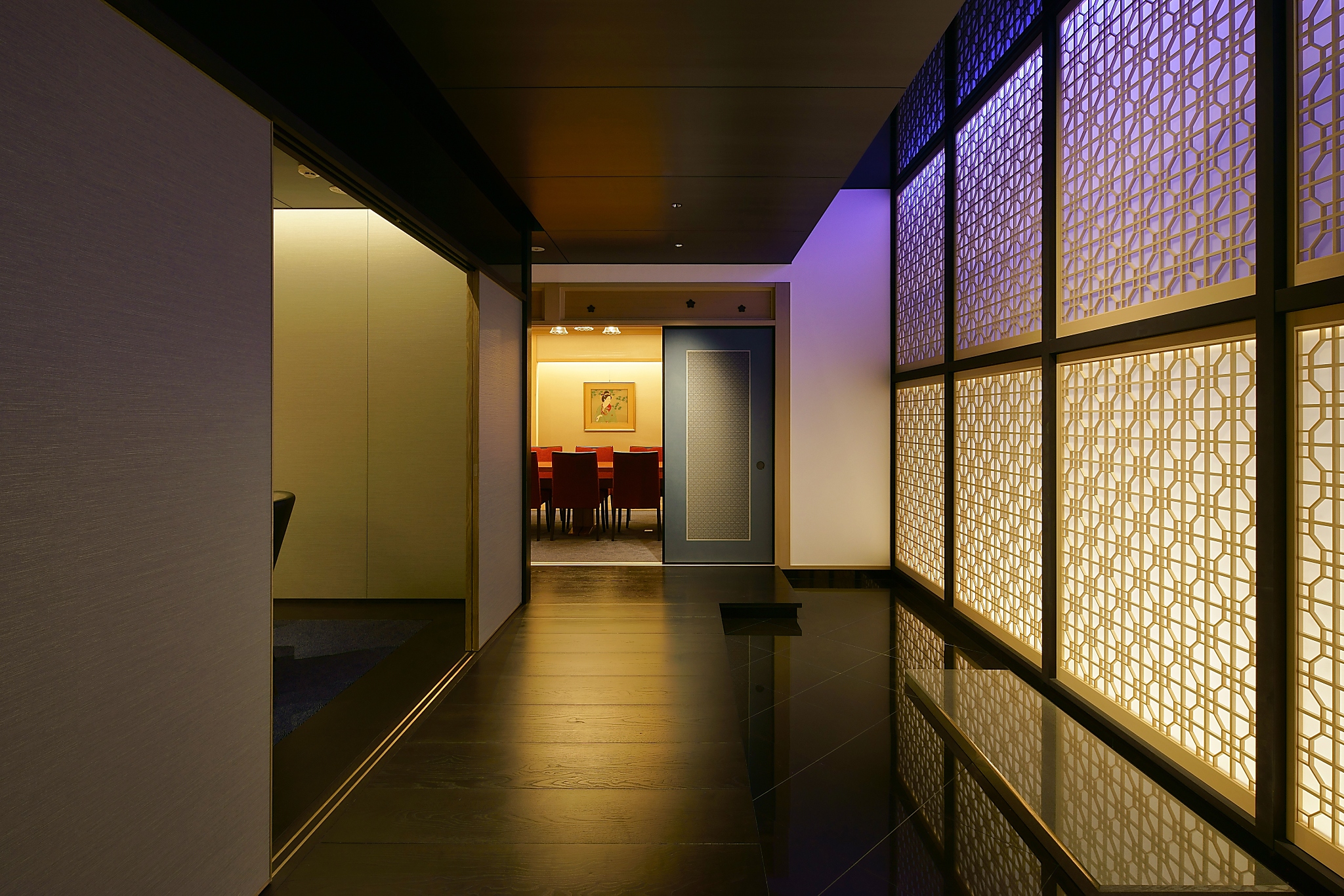「極みの空間」である3Fには極小のグレアレスダウンライトや、光壁を用いるなど現代的な照明手法を積極的に採用した洗練された空間となっている。光の効果によって鏡面素材で構成された空間の映り込み効果をより高めている。