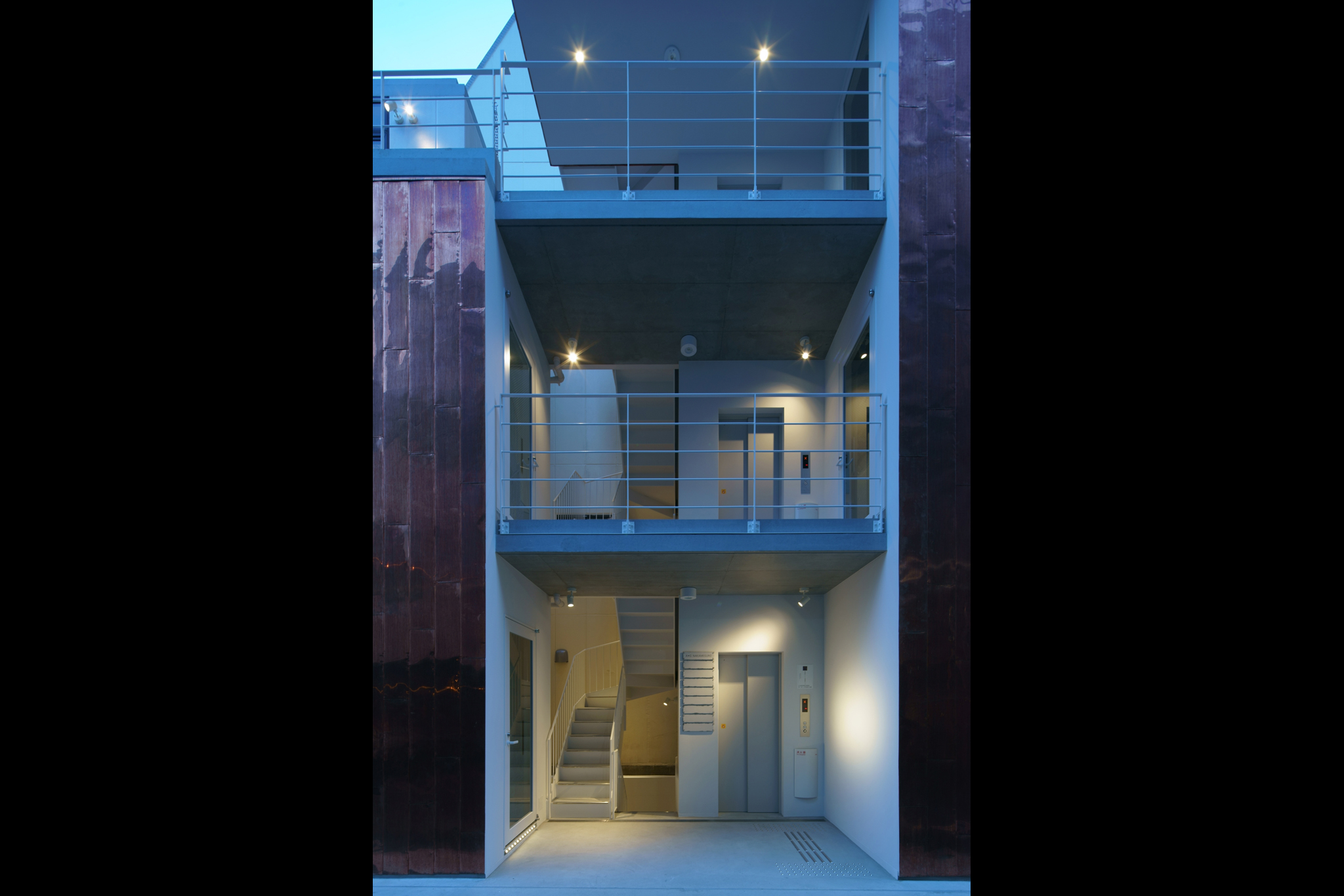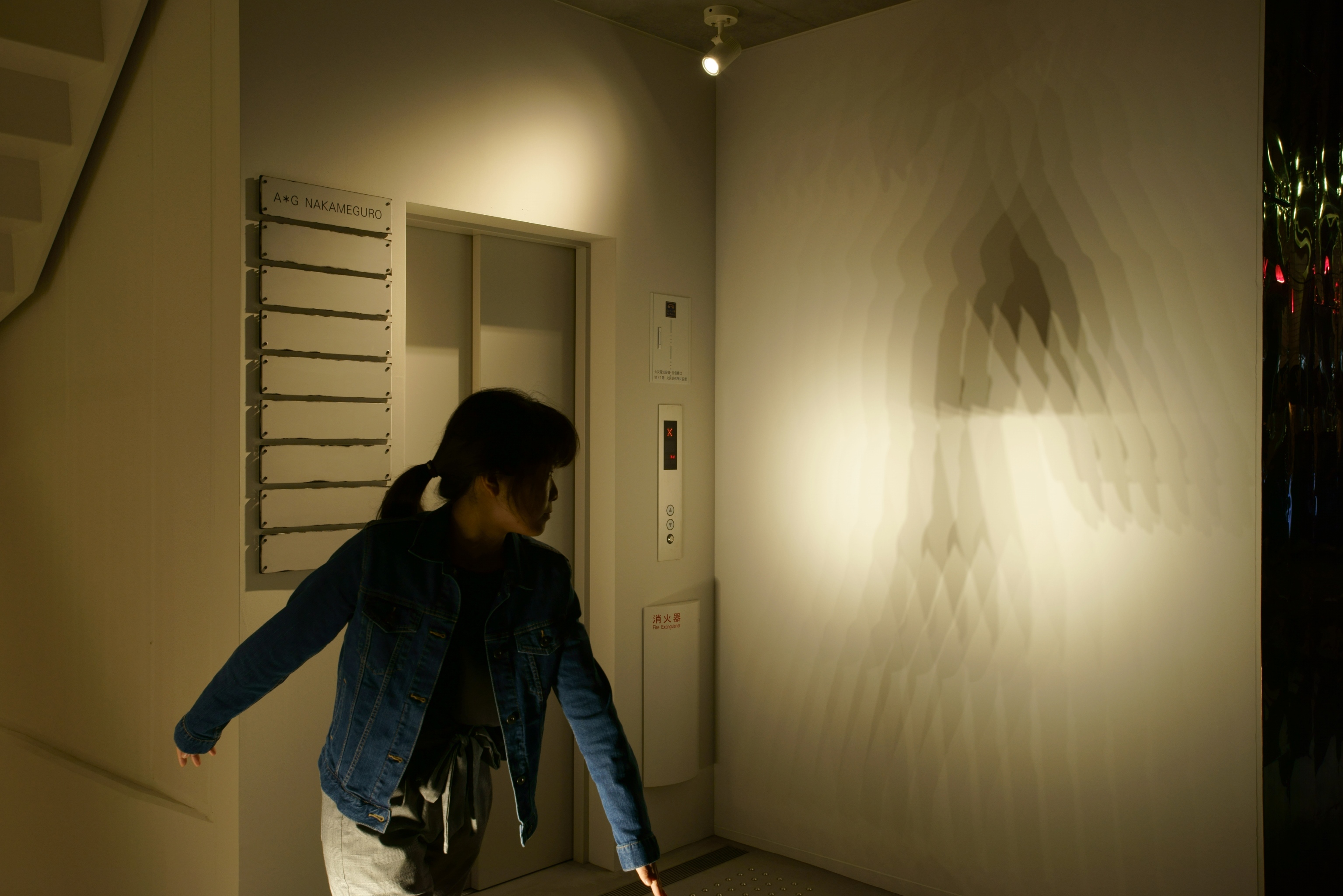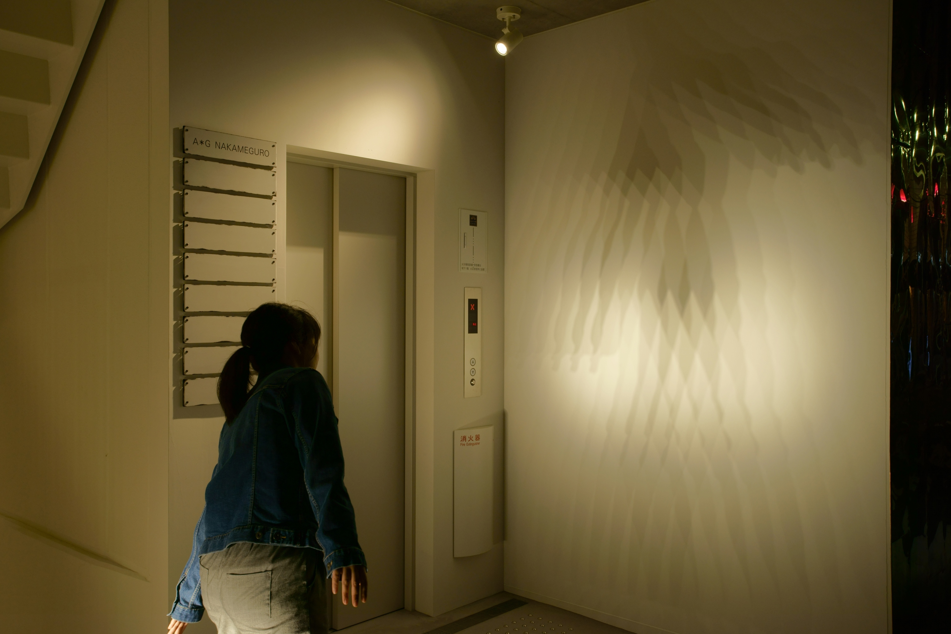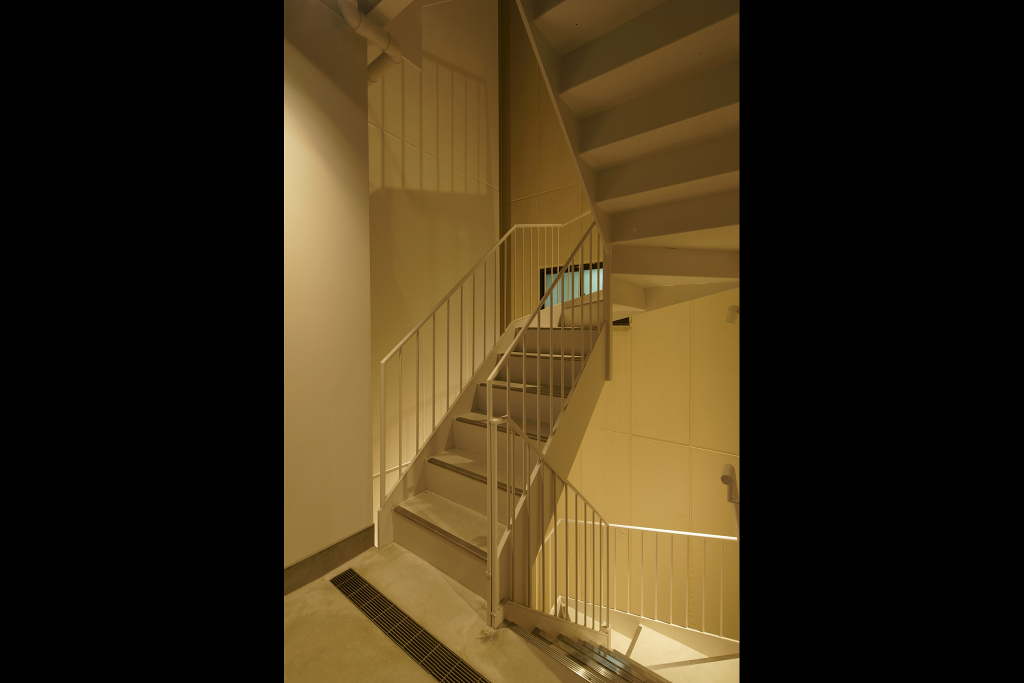 東京都内にある商業ビルの照明計画。弊社は共用部の照明計画を行った。1Fの共用部にはドットタイプのライン照明を低い位置に設置し、意図的に壁面にマルチシャドウ(幾重にも重なる影)を映し出す仕掛けを用意し、訪れる人を楽しませる。