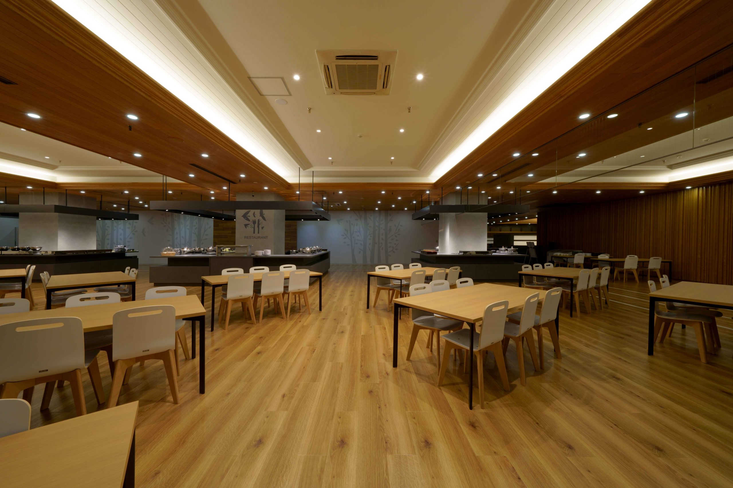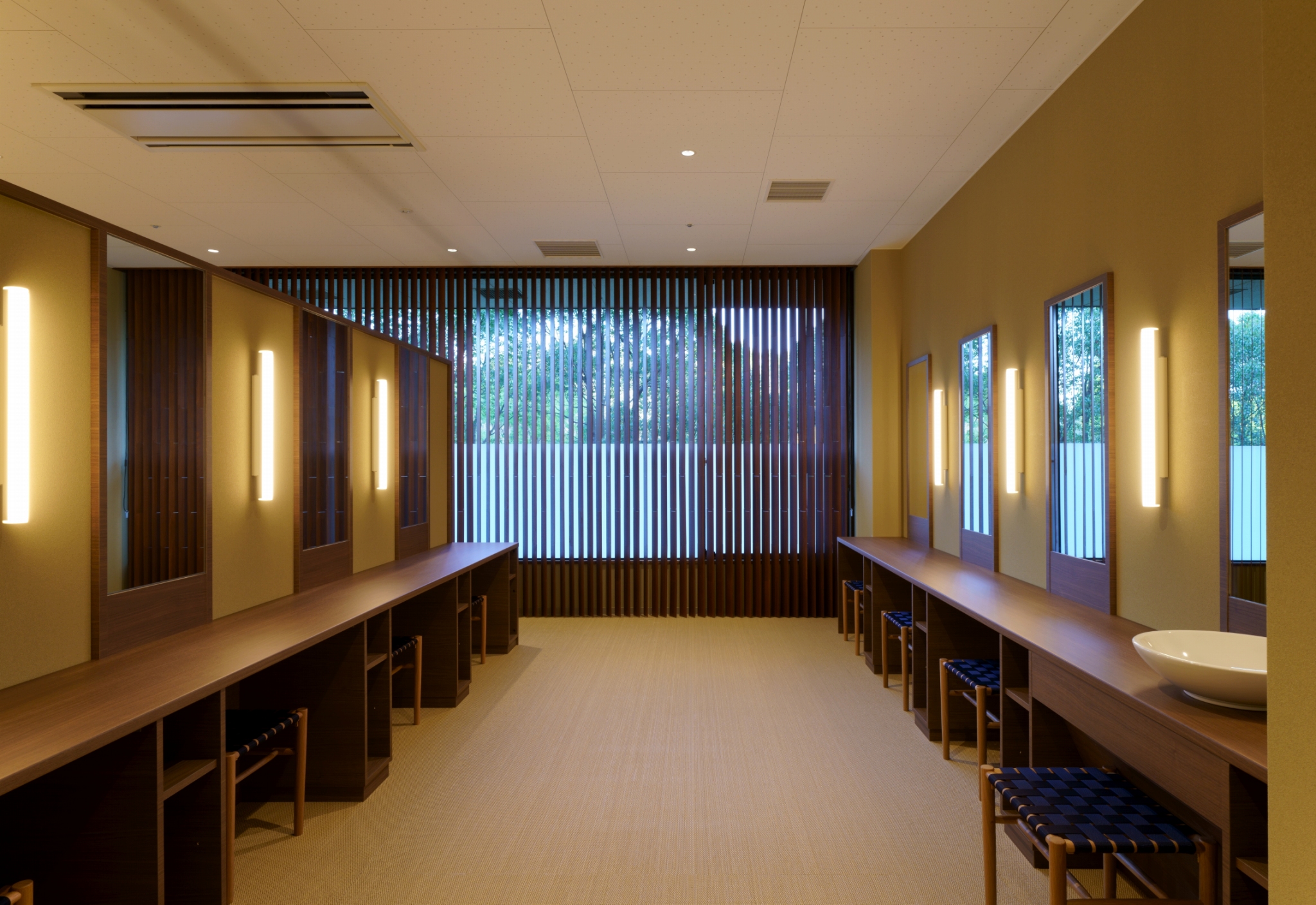 リニューアルプロジェクトであるため、既存の天井やダウンライトなどを残しつつ、心地よく活動的な光環境を作り出すことに注力した。既存照明が4000~5000K前後の色温度となっていたため、共用部・レストラン・スポーツ施設は3500~4000K、温浴エリアは2700~3000Kの色温度で計画している。